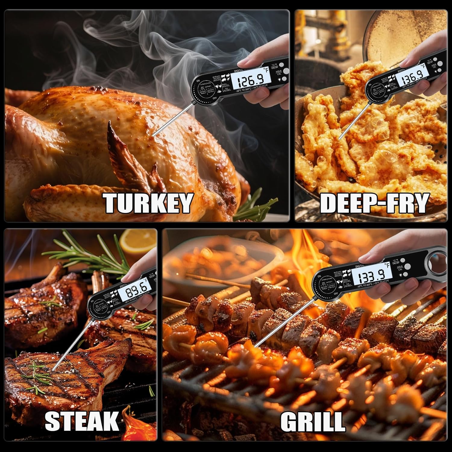 - 🍠【INSTANT READING】Digital meat thermometer provides fast and accurate temperature readings within 2-3 seconds with ±2°F accuracy