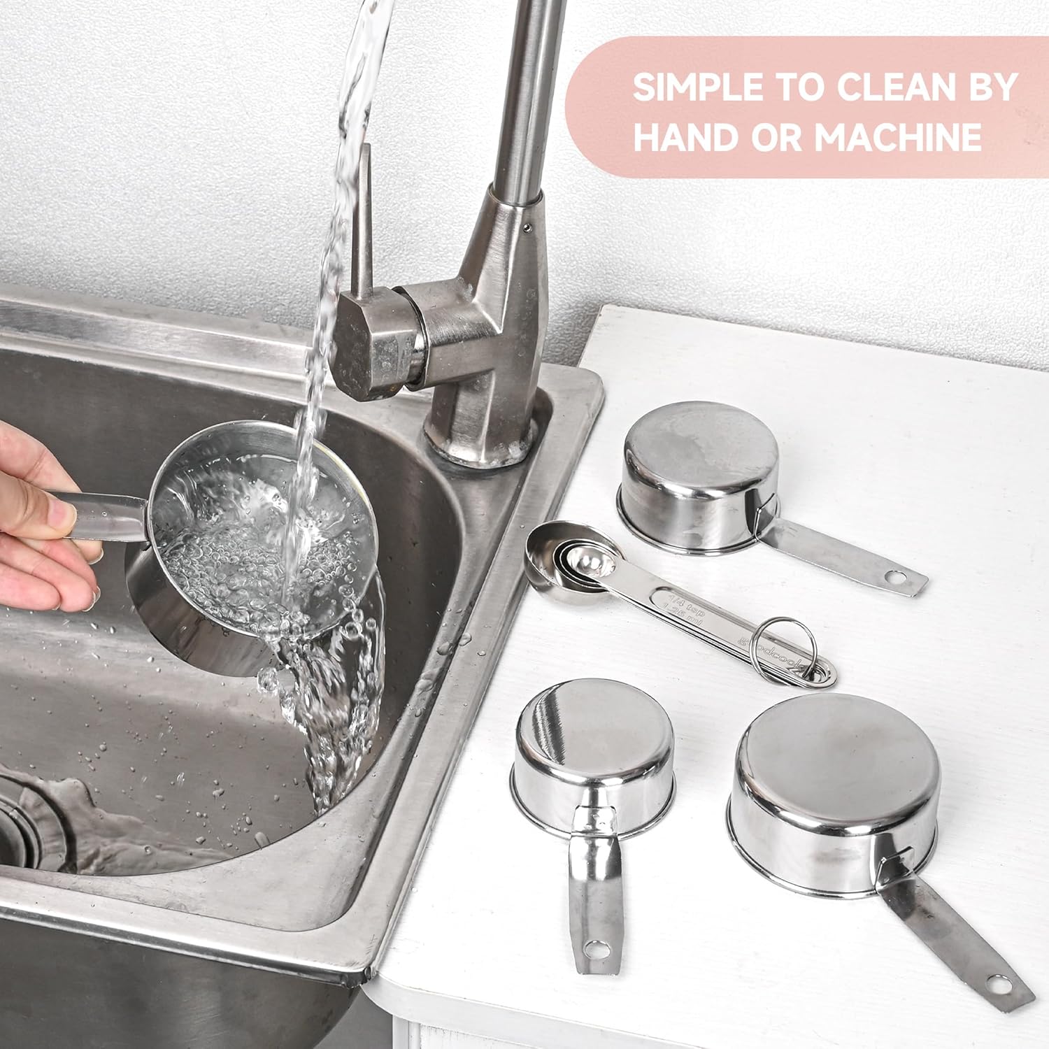 - [Engraved Markings for Accuracy]:Each cup and spoon features permanent etched measurements in both metric (ml) and US units. Clear and easy to read, even after repeated dishwasher cycles.