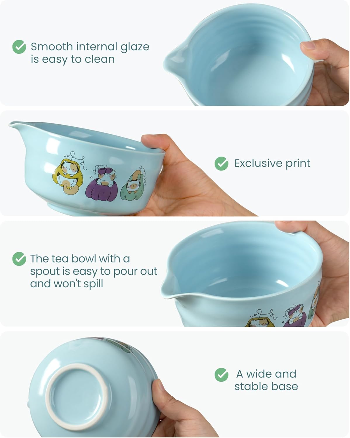 - Elegant & Safe Glazed Interior – Our ceramic matcha bowl is crafted with a smooth, lead-free glazed interior that resists tea stains and ensures effortless cleaning. The polished finish not only enhances the artistic beauty of this matcha tea set but also guarantees safe, non-toxic matcha preparation for daily use.