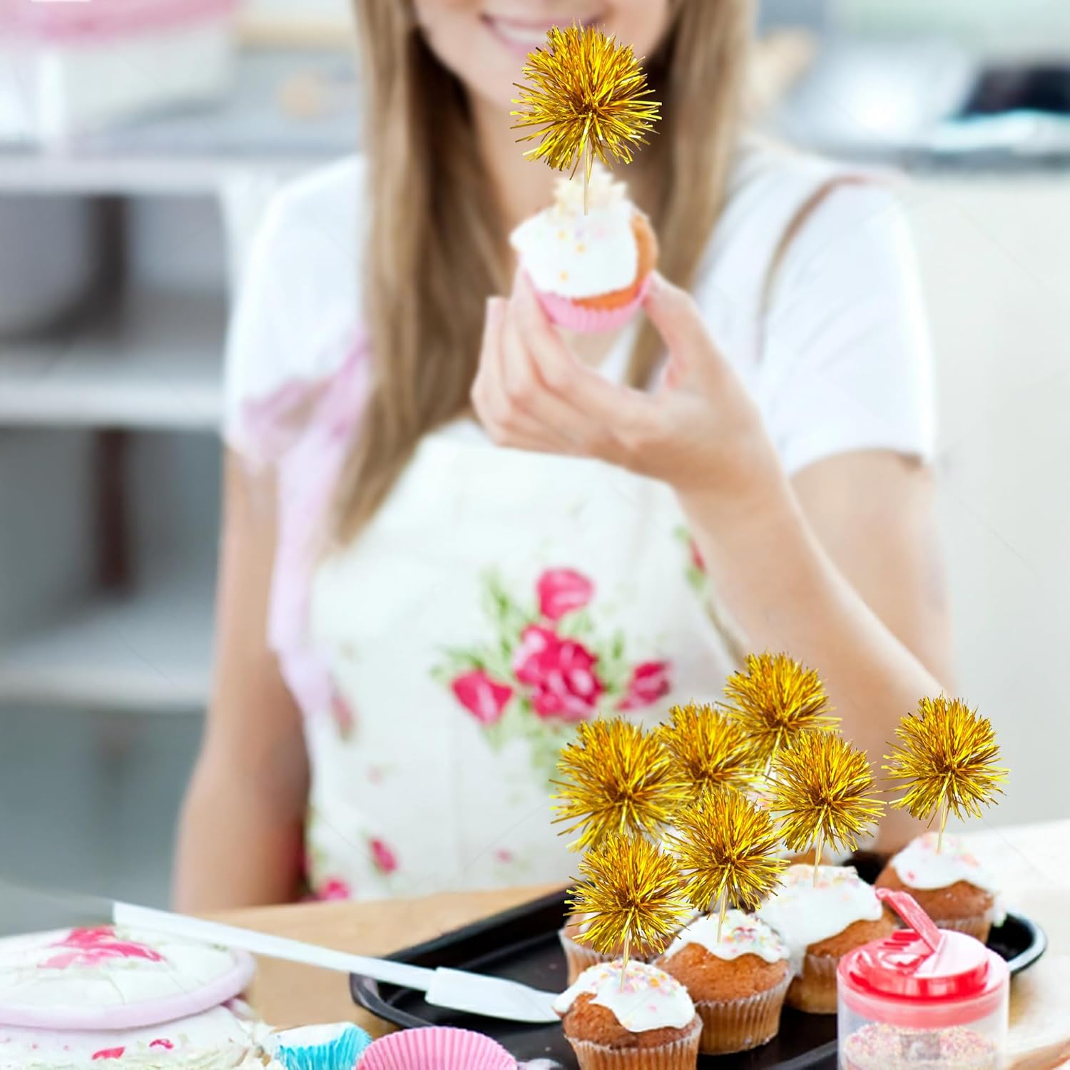 - -Premium Material: These Foil Firework Cupcake Toppers are made of high quality foil and food-grade toothpick, very safe to put them on cakes, cupcakes, ice cream, fruits, pie, dessert, cheese or any dish and food appetizer you want to decorate.