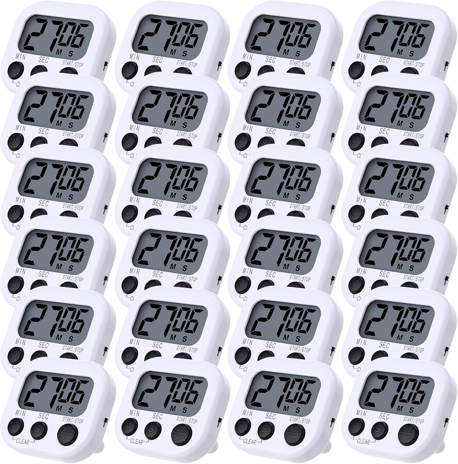 Leumoi 24 Pcs Digital Kitchen Timers Magnetic Back Timers Bulk Large Screen Loud Alarm On/Off Switch Minute Second Count up Countdown Memory Setting for Cooking Classroom Exercise (White and Black)
