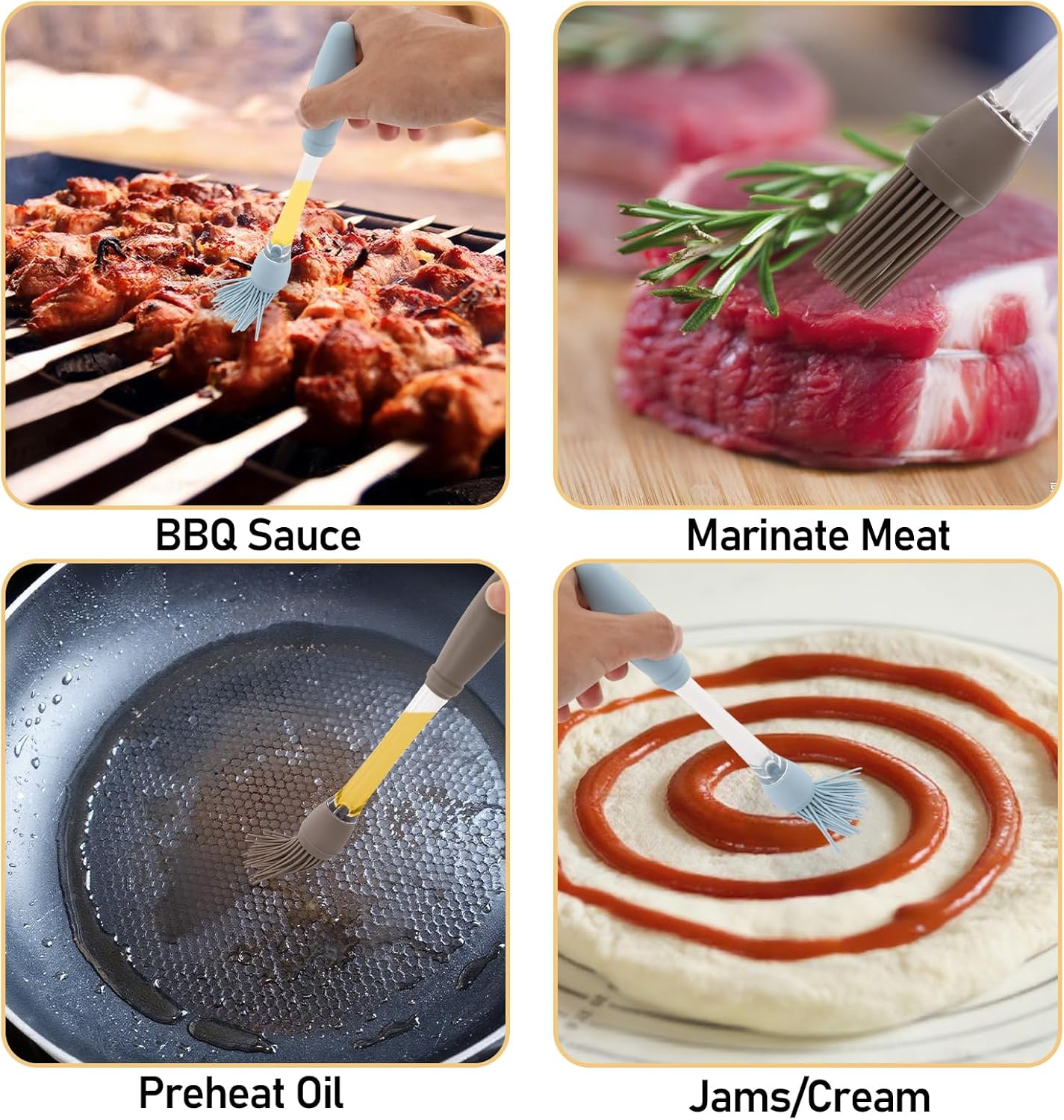 - Multi Function: This brush for cooking is an ideal cooking tool. You can use it for barbecue, BBQ, baking, salad dressing and many other occasions. Whether you're in your home kitchen, camping, RVing, or picnicking, silicone brush cooking can provide you with a professional-grade cooking experience.