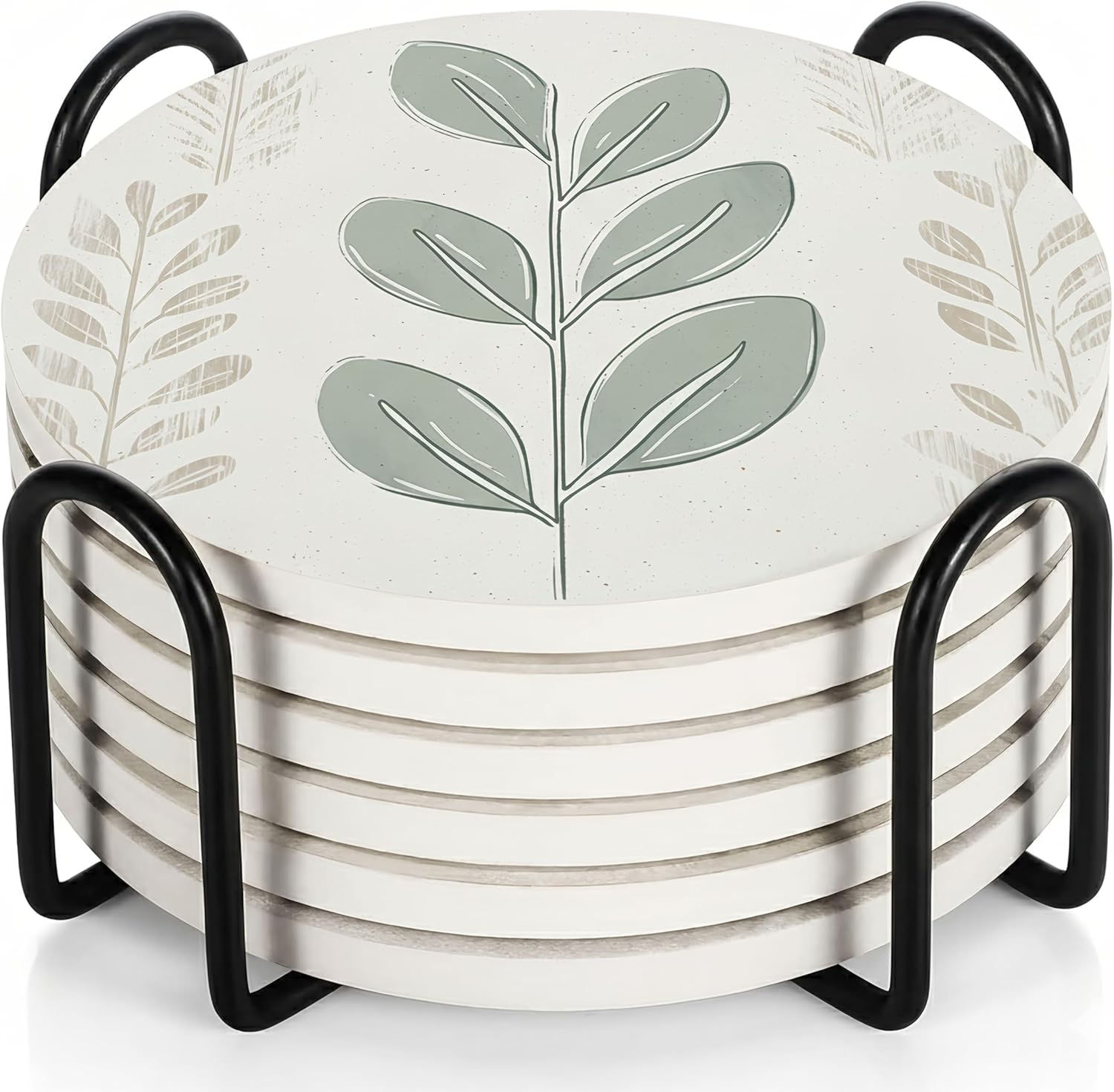 - ABSORBENT CERAMIC STONE: VEYRO coasters for drinks are crafted from premium ceramic that is naturally absorbent, gently drawing in water rings and condensation before they touch your surfaces. Designed with balance and precision, they keep your coffee tables and desks spotless — so every sip feels calm, effortless, and beautifully in place. Perfectly sized for mugs, tumblers, wine glasses, and even vases or small planters.