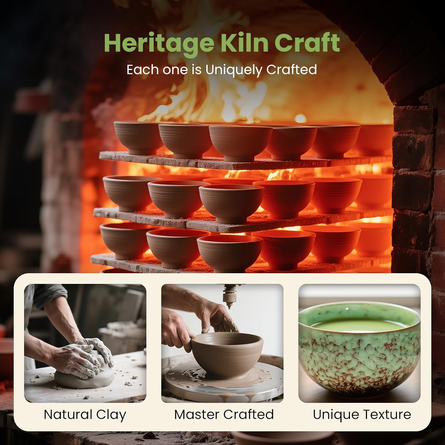- Heritage Kiln Craft: This matcha bowl is masterfully kiln-fired at high temperatures to create a unique celadon glaze with natural kiln patterns, making each piece a one-of-a-kind masterpiece. More than just practical, itās a beautiful piece of art perfect for matcha ceremonial grade tea ceremonies and sharing matcha with friends.