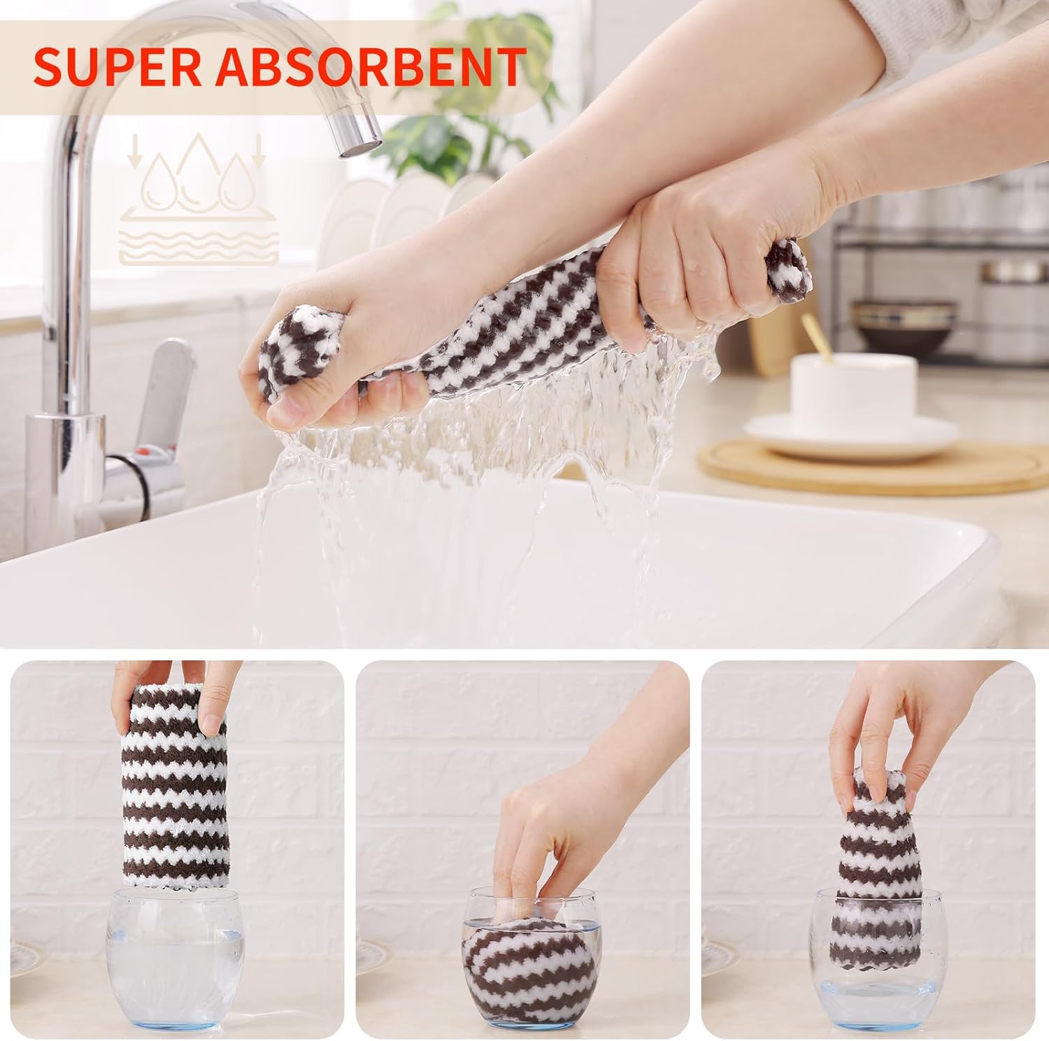 Homaxy 18 Pack Kitchen Dish Cloths, Ultra Soft and Absorbent Dish Towels, Reusable Fast Drying Microfiber Cleaning Cloth, Coral Velvet Wave Design Lint Free, 10 x 10 inches, Brown