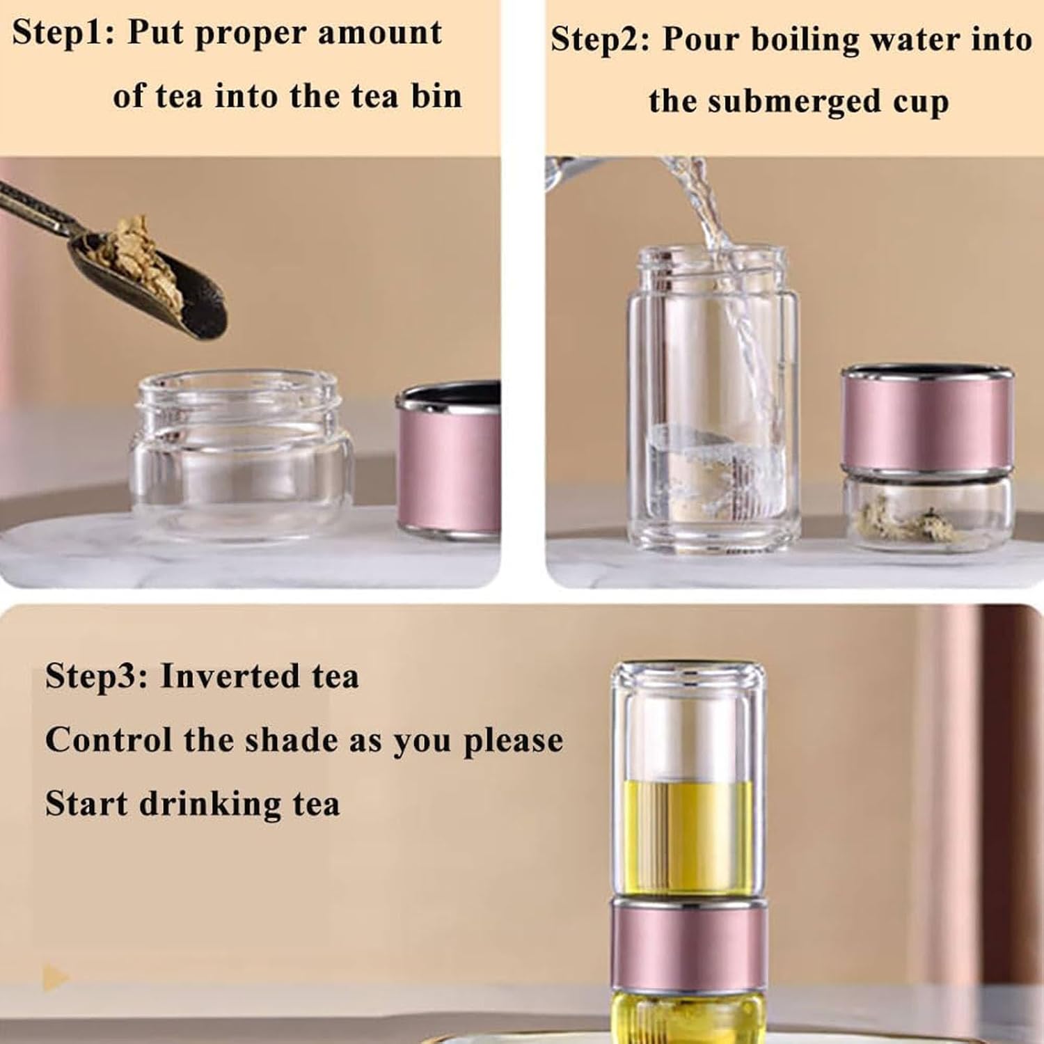 - 3-in-1 Versatility: This tea infuser bottle as a tea infuser, a fruit infuser, or remove the filter to turn it into your everyday water bottle—meeting multiple drink needs in one stylish design; Enjoy a Burn-Free Experience with the Double-Walled Glass Insulation That Keeps the Exterior Cool to the Touch.