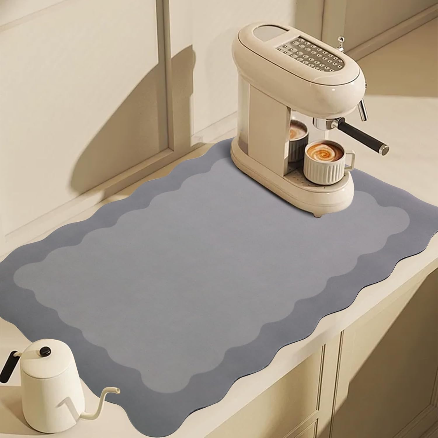 Scalloped Coffee Bar Mat for Countertop, Cute Dish Drying Mats for Kitchen Counter, Diatomite Absorbent Mat for Coffee Station, Kitchen Aesthetic Decor (12"x19", Grey)
