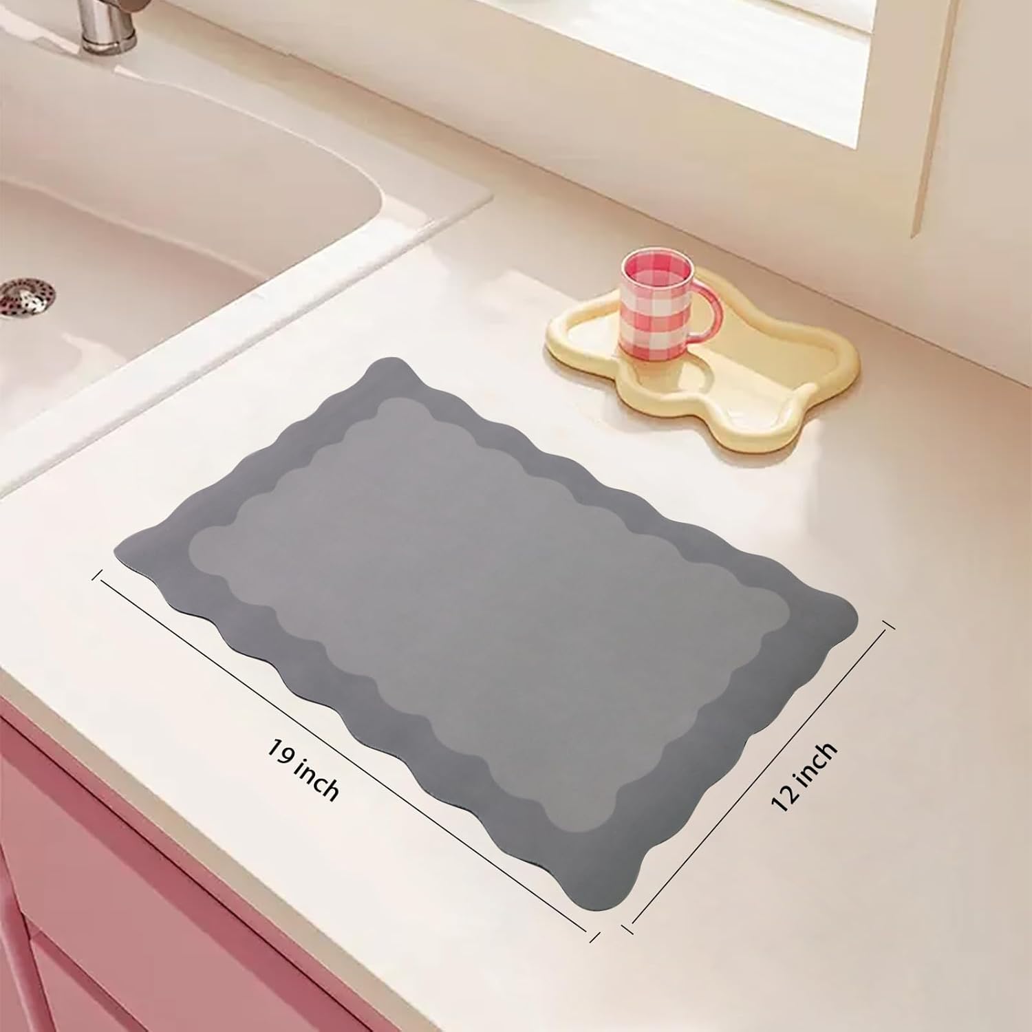 - Diatomite Material & Quick Dry: Our scalloped dish drying mats are made of Diatomite Material, which is different from others. When water drips from the dish rack onto it, our drying mats will get dry after about 8-10 seconds, which keeps your table dry