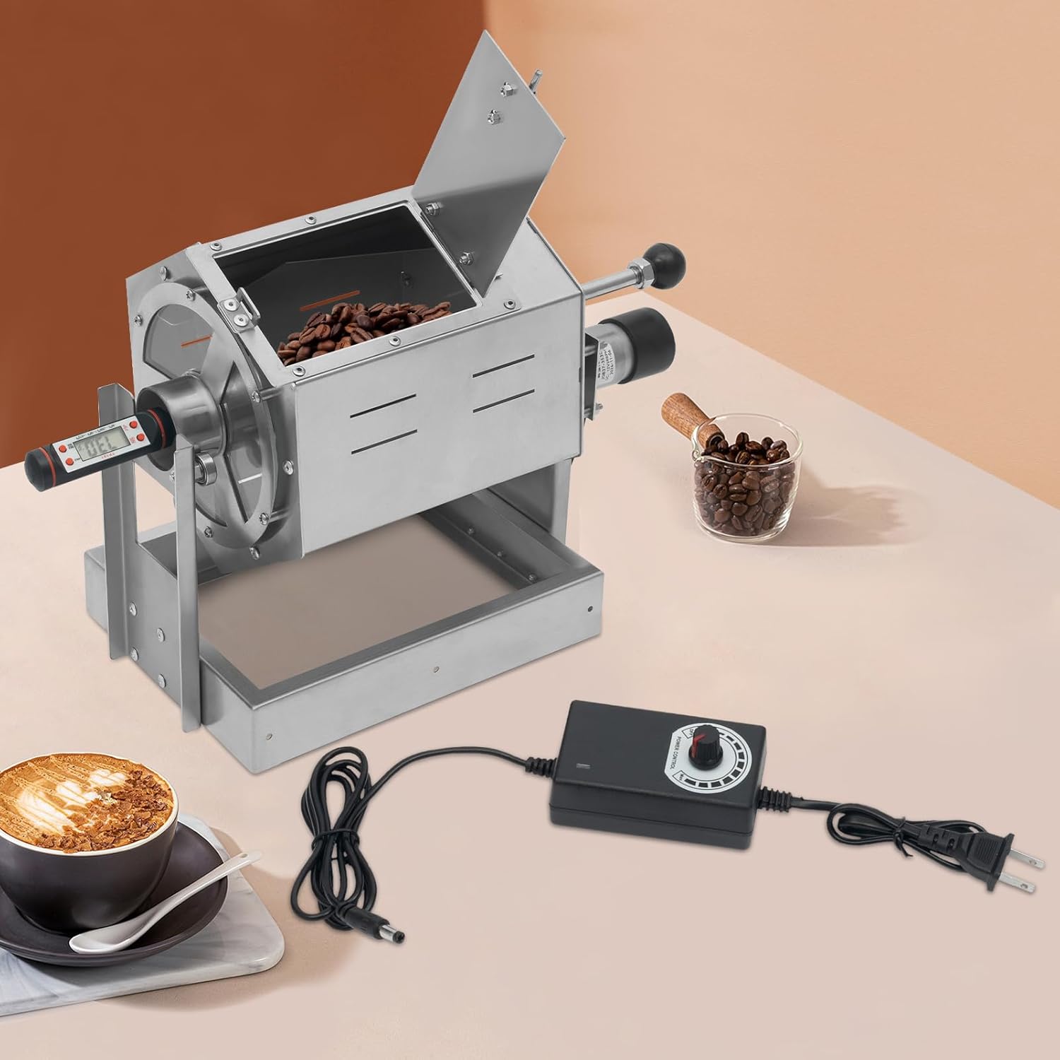 - 【0.66-2.65 LBS Large Capacity】This drum-style coffee bean roaster can roast approximately 0.66-2.65 lbs(300-1200 g) of coffee beans, peanuts, nuts, soybeans, walnuts, sunflower seeds, kernels, rice, millet, pine nuts, and more in a single batch. Its generous capacity minimizes the need for frequent refilling, making it ideal for both commercial and home use