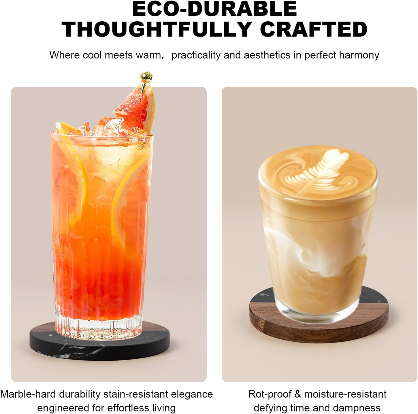 - Coaster material: Made of marble and natural acacia wood, with unique natural patterns, featuring a modern and elegant design.