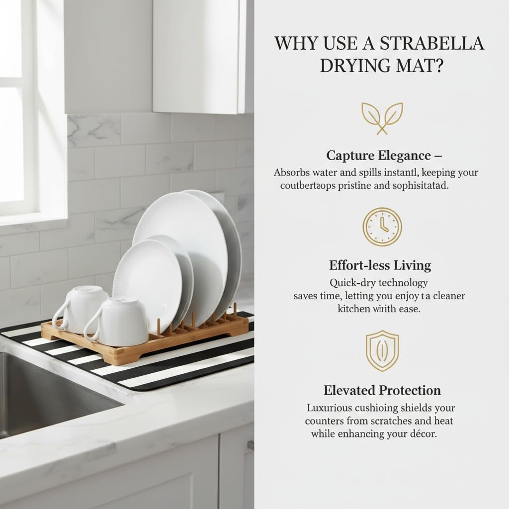- EXCEPTIONAL ABSORBENCY: Experience the superior absorbent power of our Dish Drying Mat, designed to quickly soak up moisture from freshly washed dishes, ensuring a faster and more efficient drying process.