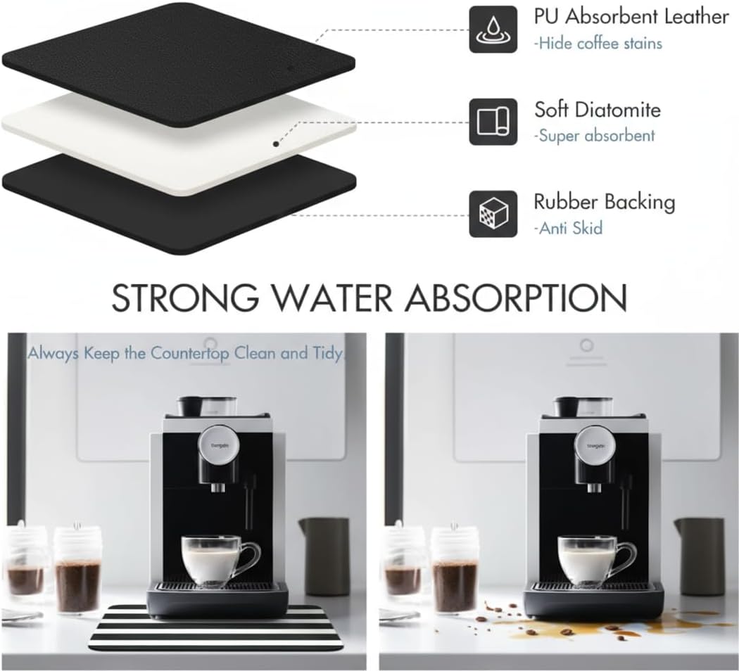 Dish Drying Mat Super Absorbent – 16" x 18" Coffee Mat for Countertops – Non-Slip Drying Mat for Kitchen Counter – Easy to Clean Water Absorbent Mat – Large Dish Drying Mats (Zebra)