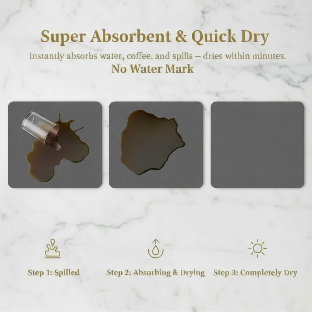 - EXCEPTIONAL ABSORBENCY: Experience the superior absorbent power of our Dish Drying Mat, designed to quickly soak up moisture from freshly washed dishes, ensuring a faster and more efficient drying process.