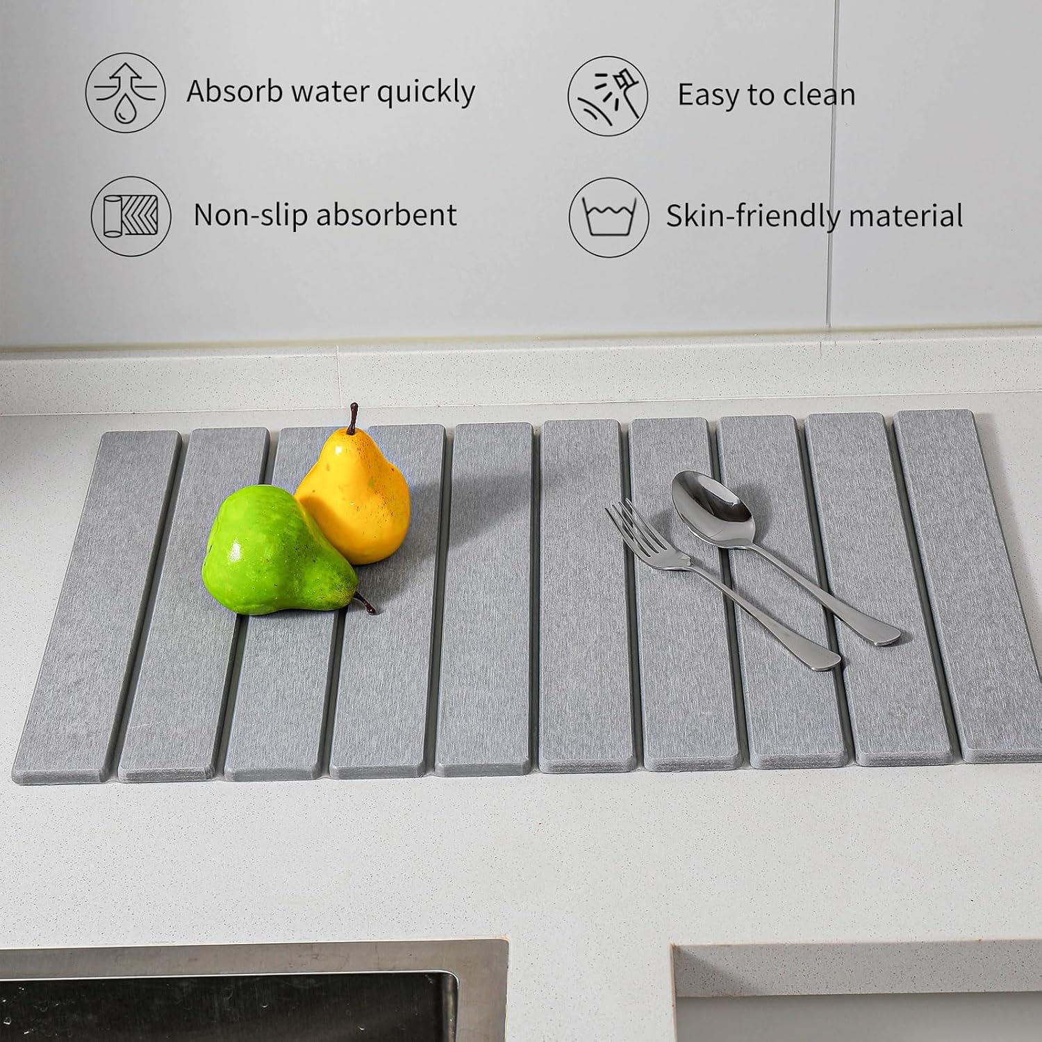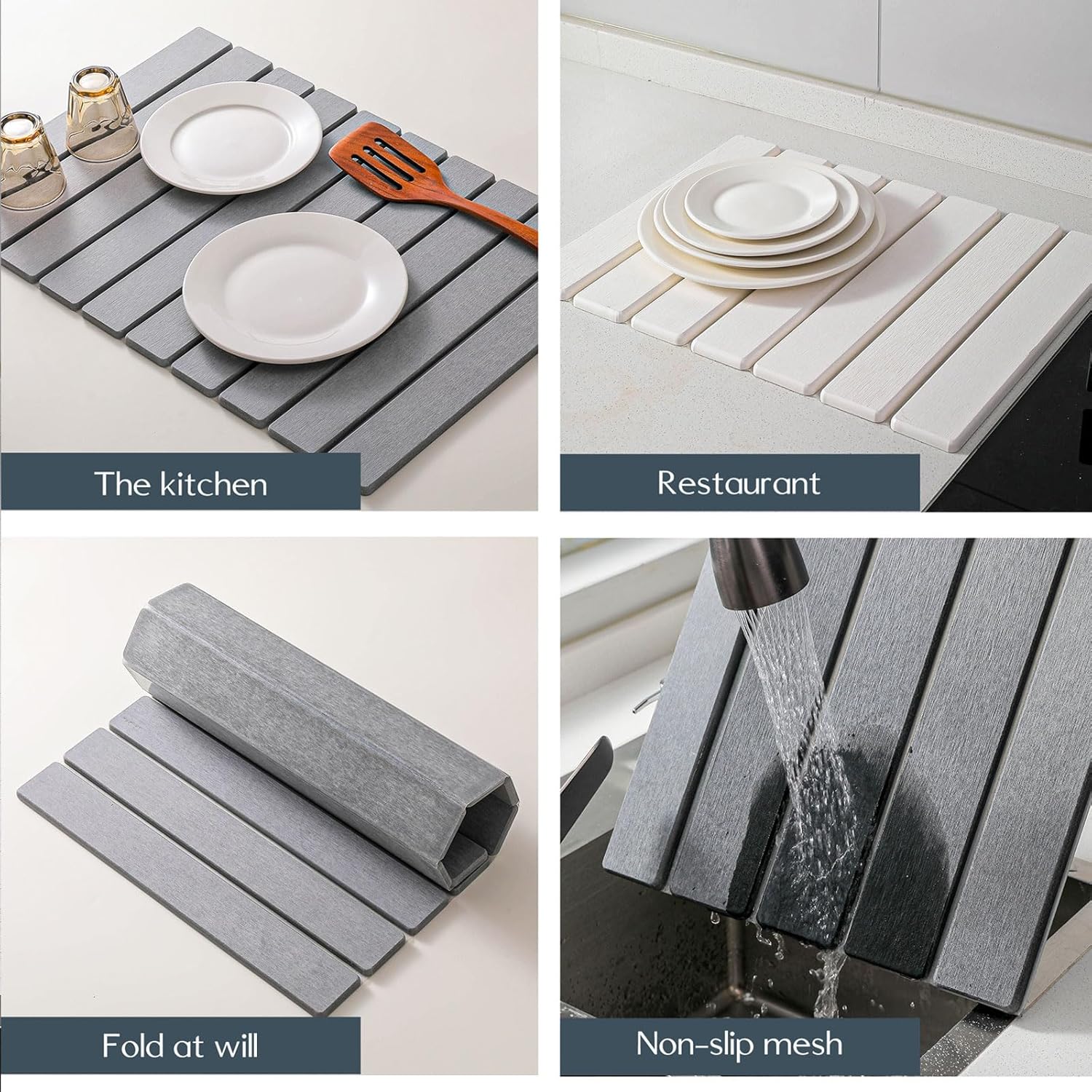 - 【Super Absorption & Quick-Drying Capability】Instantly Dry & Super Absorbent - Soaks up water droplets in seconds and dries fast itself, keeping your countertop dry and hygienic. No more waiting for dishes to air dry or dealing with soggy mats.