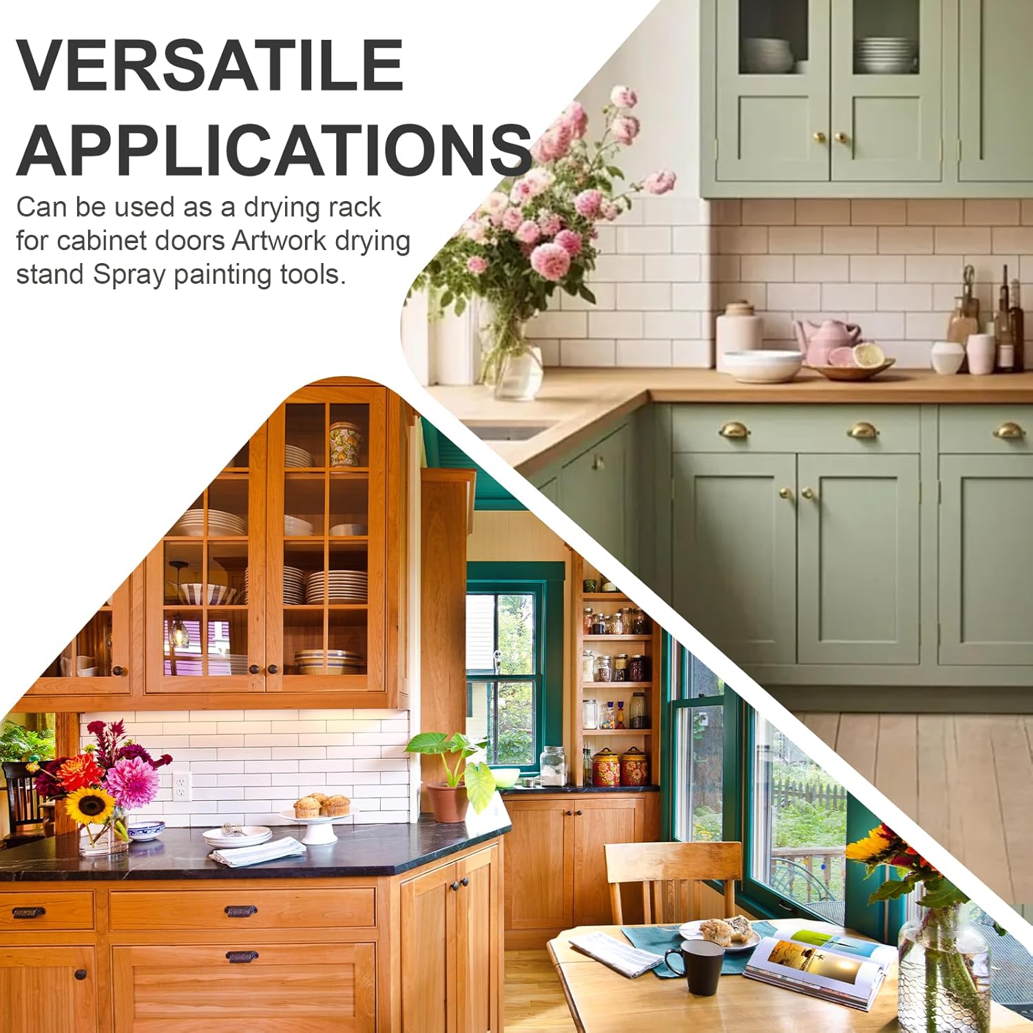 - Flexible Size: Each paint drying rack is 14.6 inches in length and 5.24 inches in height, suitable for various cabinet door sizes. Including the hook, it is 1.45 inches long, allowing you to hang cabinet doors without taking up floor space. This cabinet door paint hanger provides a stable platform for efficient painting and drying, offering you the flexibility needed for any project