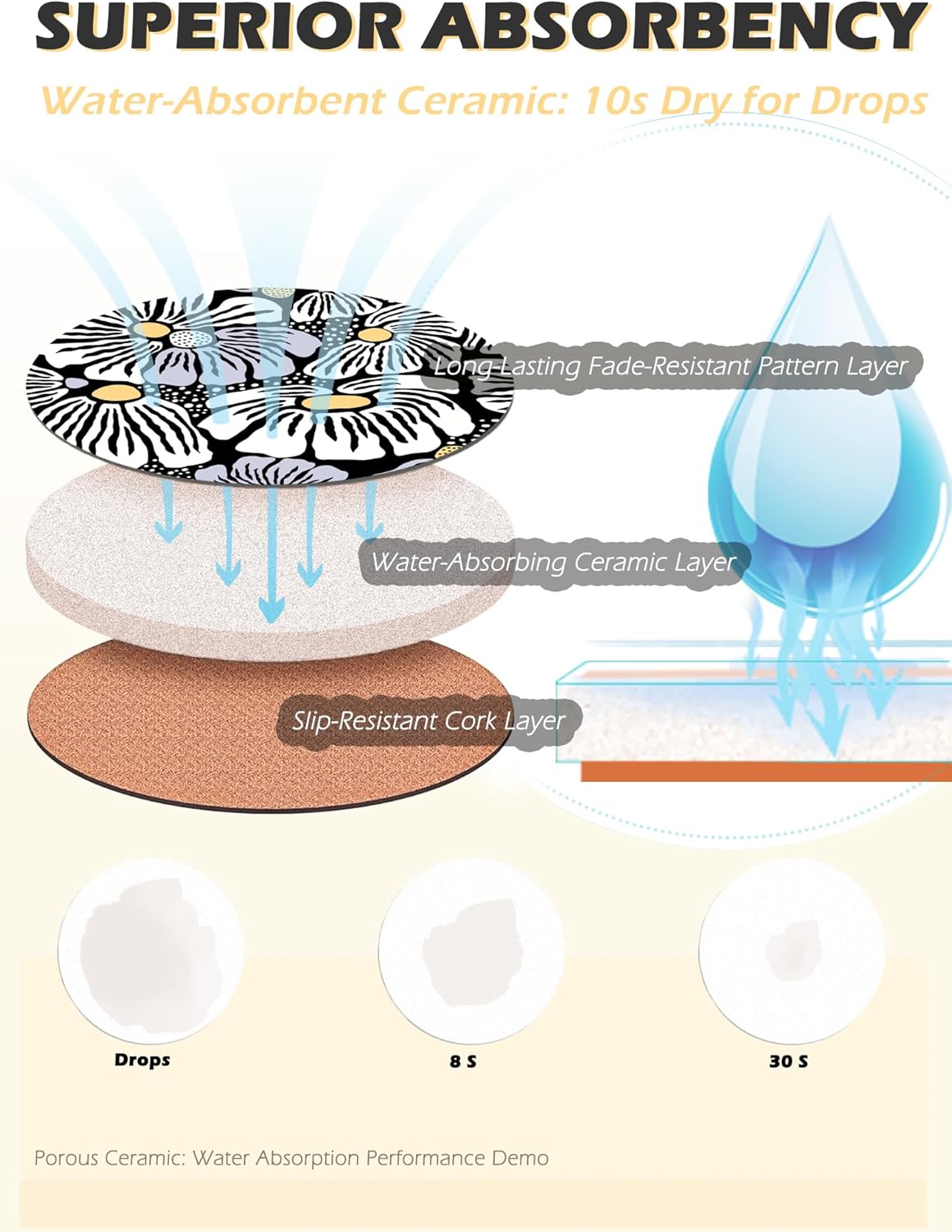 - β ππππππ πππππππππ Our ceramic coasters are designed to quickly absorb any moisture or condensation, keeping your surfaces dry and free from unsightly water rings