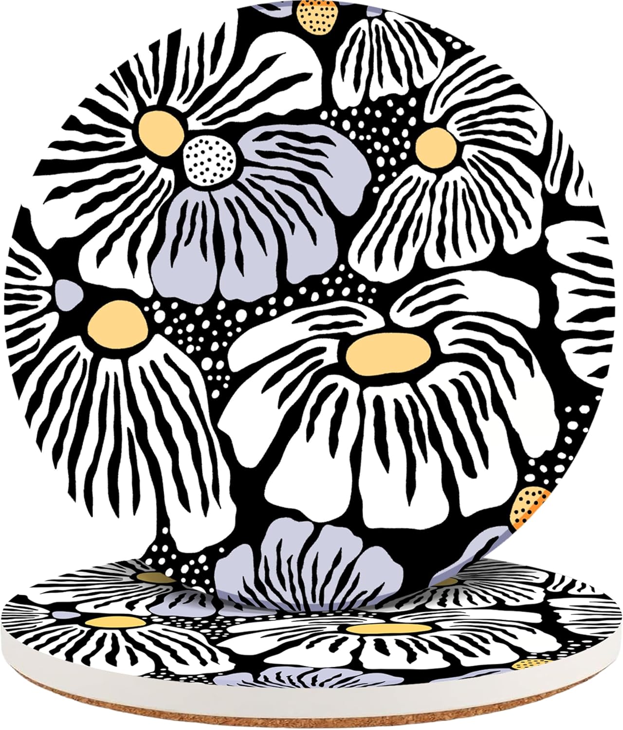 Ceramic Coasters Set of 2, Absorbent Drink Coasters with Cork Backing, Round Floral Cup Mats for Table Protection, Durable Anti-Scratch Home Kitchen Bar DΓ©cor, Housewarming Gifts β Wild Mums 2pcs