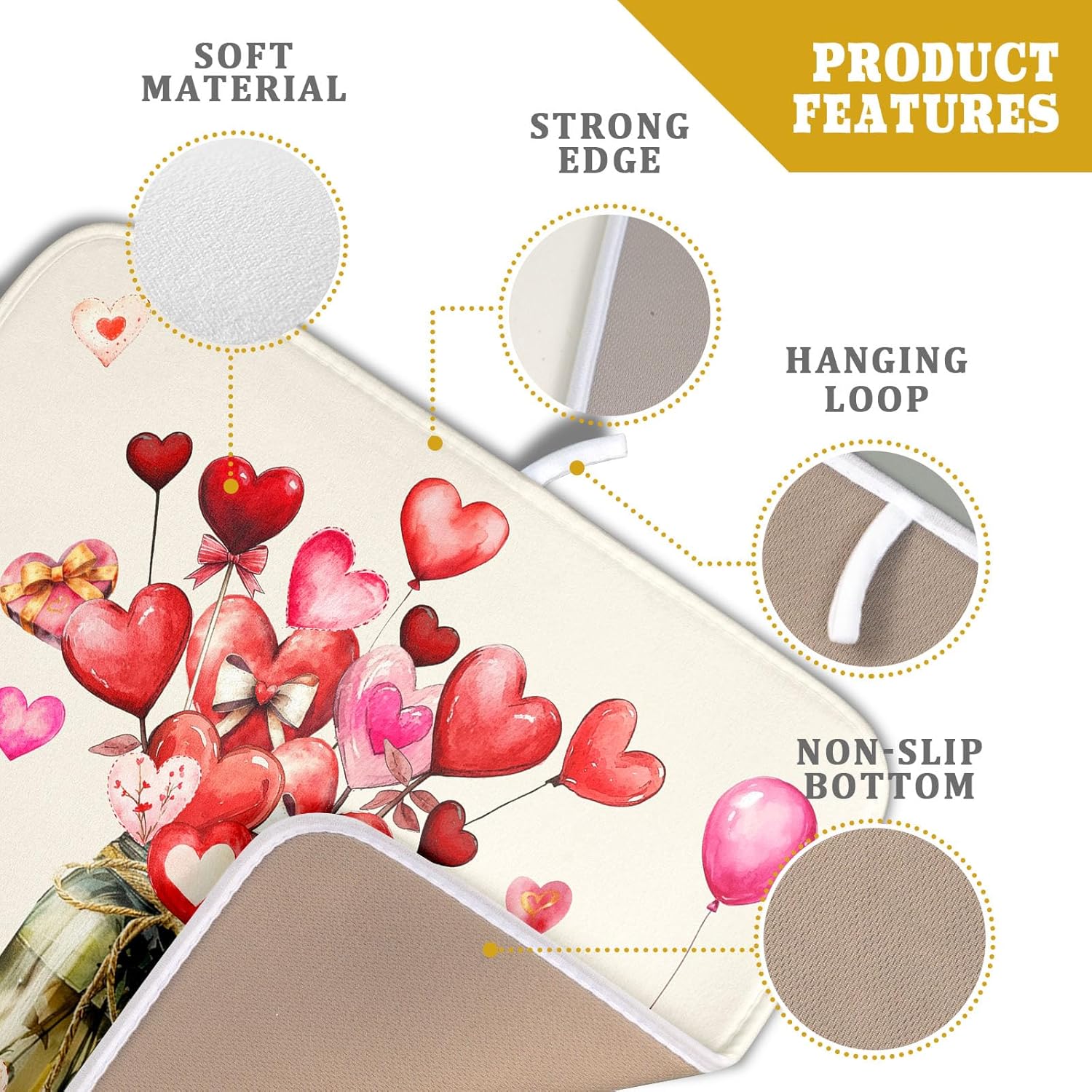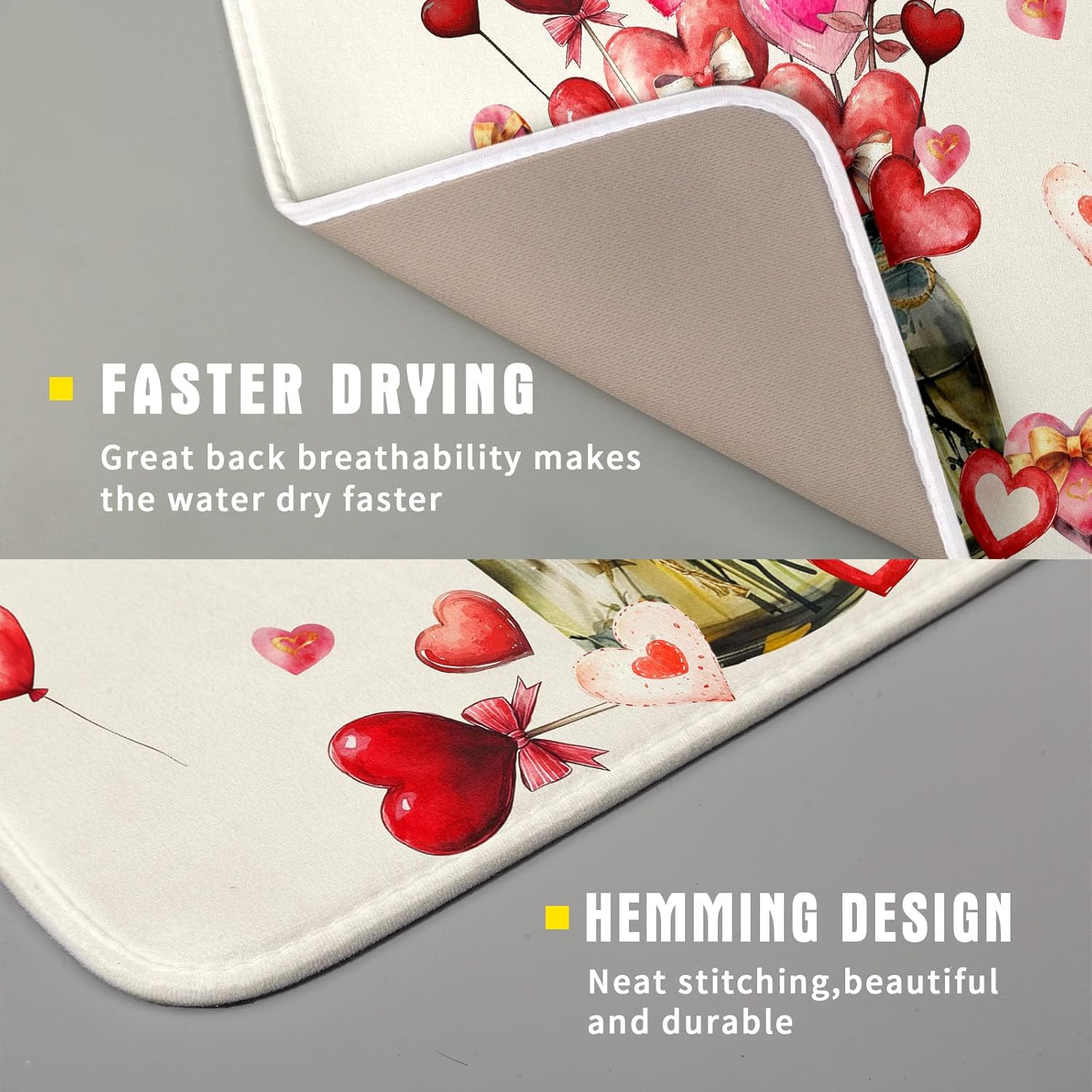 - 1【Good Material】:Our Valentine's Day drying mat is made of high absorbent microfiber and the middle is made of composite spongedurable, reversible do not fade and comfortable. At the same time, it can protect your kitchen counter from scratching by the tableware.