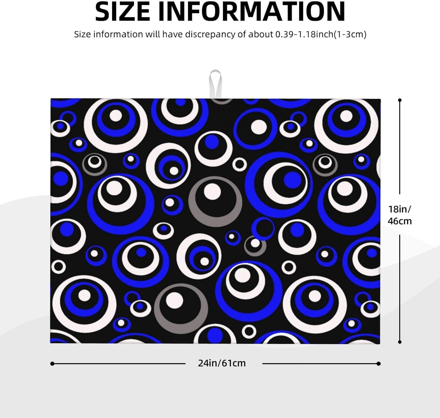 - Premium Microfiber Polyester Material: This modern blue black and white circle pattern dish drying mat is made of high-quality microfiber polyester, making it an absorbent dish drying mat that efficiently soaks up water, keeping your kitchen counter dry. As a microfiber dish drying mat, it ensures durability and long-lasting use, ideal as a dish drying pad for kitchen counter