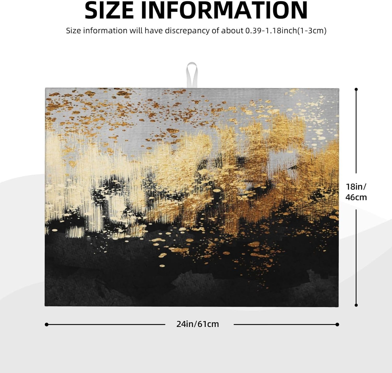 - Premium Microfiber Material: This black gold art splash dish drying mat is made of high-quality microfiber, making it an absorbent drying pad that quickly soaks up water, keeping your kitchen counter dry. The durable material ensures long-term use, ideal as a dish drying pad for kitchen counter