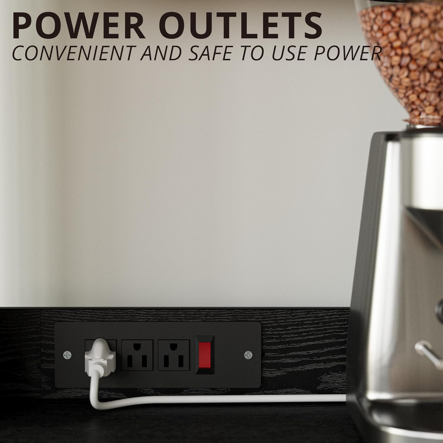 - Power Outlets: The coffee bar is equipped with a built-in power strip with 3 AC outles and a switch, enabling you to connect multiple devices and meet your need for simultaneous use.